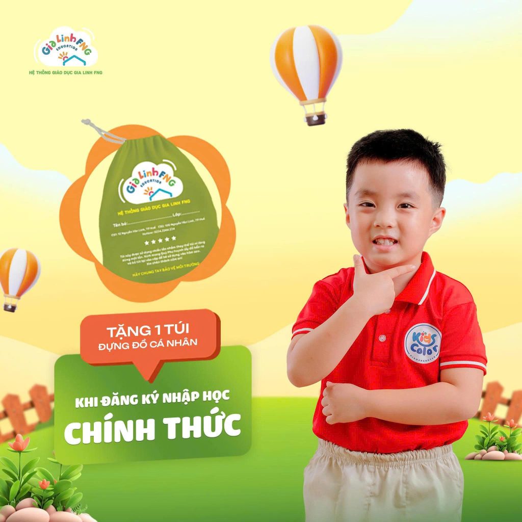 Đặc biệt, tặng ngay 1 túi đựng đồ cá nhân xinh xắn cho bé khi đăng ký nhập học chính thức tại Gia Linh FNG.