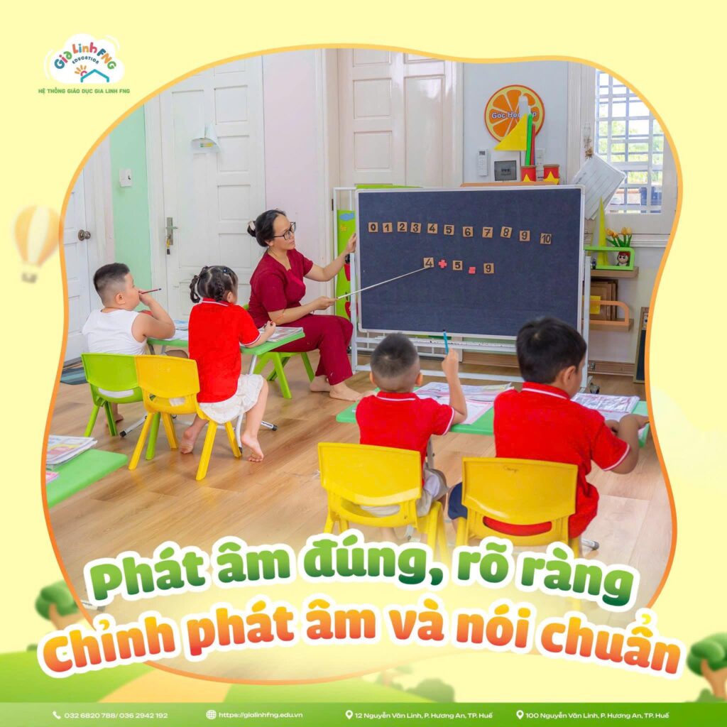Giáo viên phát âm chuẩn hỗ trợ chỉnh sửa cho trẻ, giúp con nói rõ hơn, tròn tiếng hơn và giao tiếp tự nhiên, tự tin hơn.