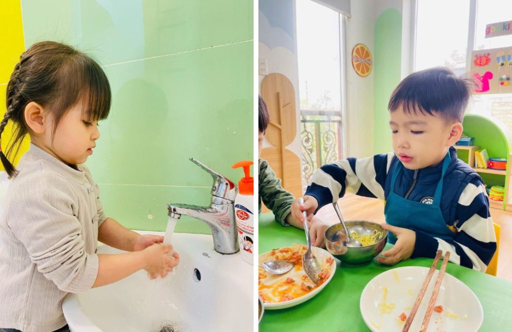 Trẻ cũng dần nhớ và tuân theo các mốc thời gian sinh hoạt như giờ ăn, giờ ngủ, giờ học, đồng thời chủ động chuẩn bị cho các hoạt động đó. Những thói quen tưởng chừng đơn giản này chính là nền tảng đầu tiên cho sự tự lập của trẻ.