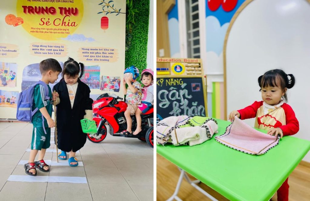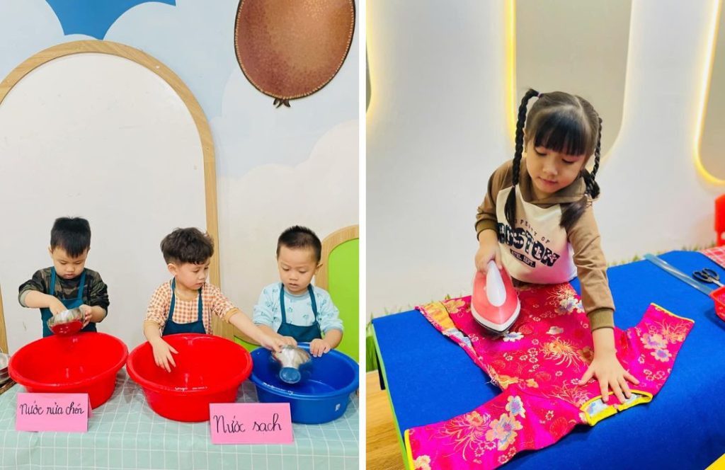 Nhiều cha mẹ nghĩ rằng con còn quá nhỏ để làm việc gì đó, nhưng thực tế, trẻ mầm non hoàn toàn có thể thực hiện nhiều việc đơn giản nếu được hướng dẫn phù hợp. Những việc như: gấp khăn, cất đồ chơi, tự lấy thìa, xếp dép, mang bát ra bồn rửa… không chỉ giúp con rèn kỹ năng mà còn là bước đầu để trẻ học cách chịu trách nhiệm và chủ động trong sinh hoạt hằng ngày. Việc con làm chưa khéo hay còn vụng về không quan trọng bằng việc con được tham gia và cảm thấy mình có ích.