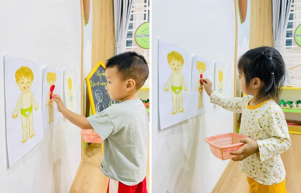 • Nhận diện cơ thể: Trẻ em được học về các bộ phận trên cơ thể mình, sử dụng những từ ngữ chính xác và thân thiện. Điều này giúp trẻ cảm thấy tự tin khi nói về cơ thể và nhận biết được giá trị của việc chăm sóc bản thân.