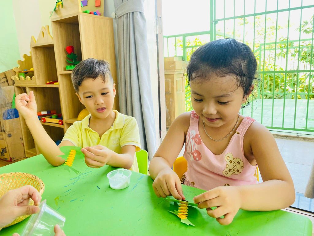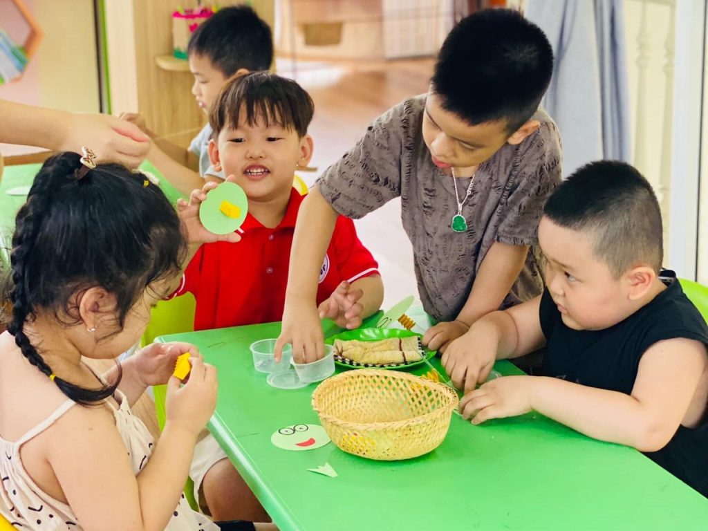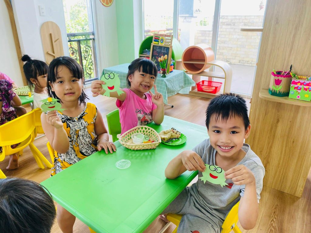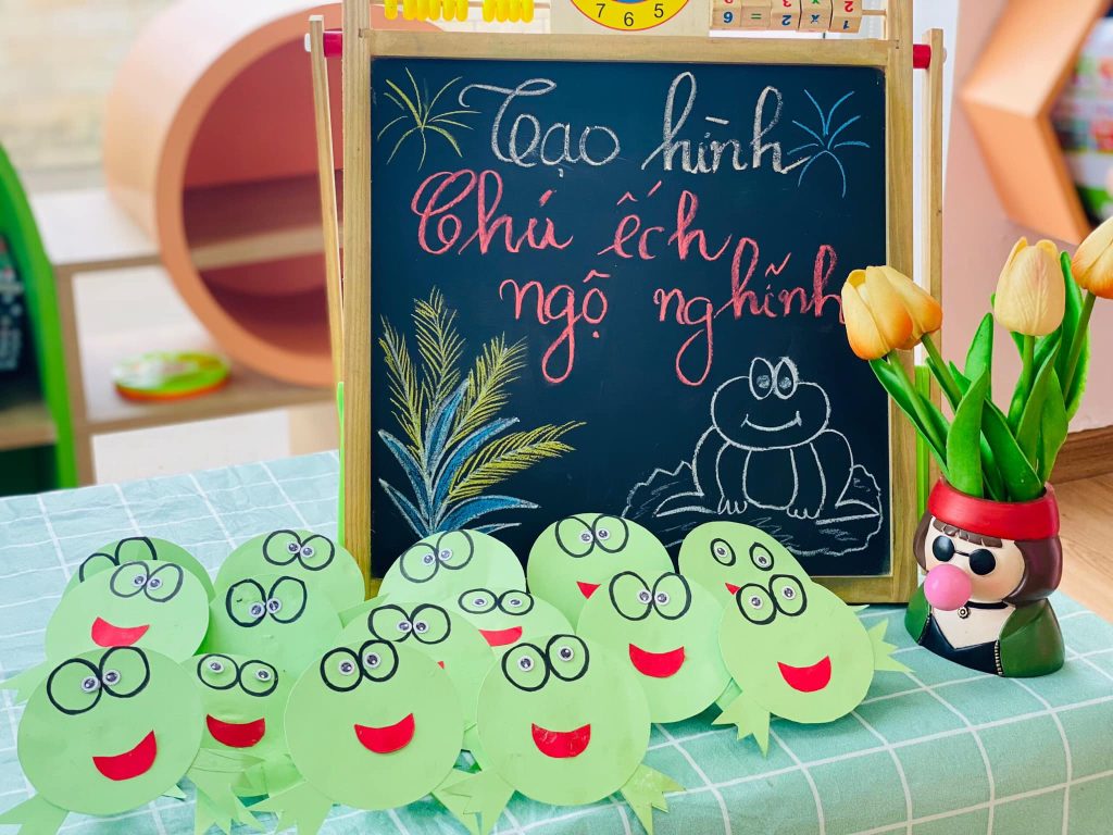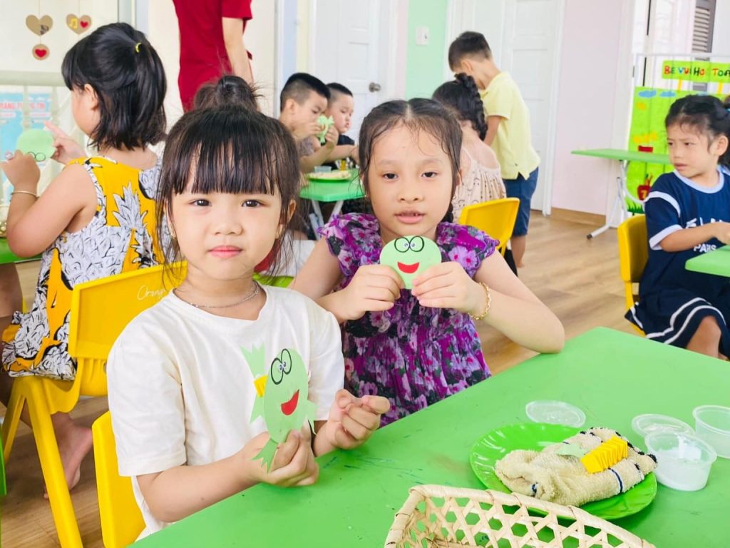 Trong suốt buổi hoạt động, các bạn nhỏ đã dùng nhiều loại giấy màu, keo dán và bút màu để tạo nên những chú ếch đáng yêu và đầy ngộ nghĩnh. Các con đã thể hiện sự cố gắng, tỉ mỉ trong từng chi tiết, từ đôi mắt long lanh, cái miệng rộng cười đến đôi chân nhảy nhót.