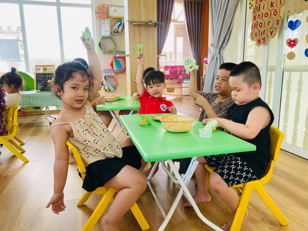 Hoạt động không chỉ giúp các con phát huy sự sáng tạo mà còn rèn luyện tính kiên trì, khả năng làm việc nhóm và sự khéo léo trong việc sử dụng các dụng cụ thủ công. Những chú ếch ngộ nghĩnh trên bìa màu hôm nay không chỉ là kết quả của một buổi học thú vị mà còn là minh chứng cho sự phát triển về kỹ năng và tư duy sáng tạo của các bạn nhỏ lớp Orange.