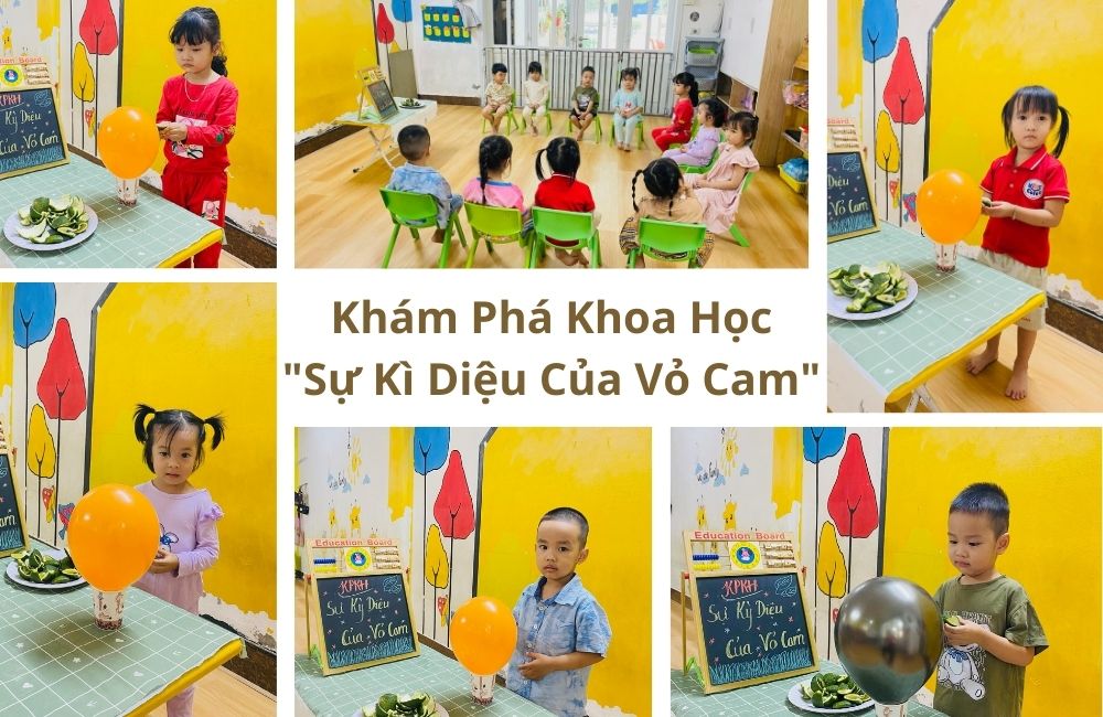 🎈 Hôm nay, lớp chúng mình đã có một buổi sáng đầy bất ngờ và tiếng cười khi cùng nhau khám phá “phép màu” của vỏ cam. Ai mà ngờ được rằng thứ nhỏ bé, quen thuộc như vỏ cam lại có thể tạo ra một “phản ứng dây chuyền” ngoạn mục đến vậy!