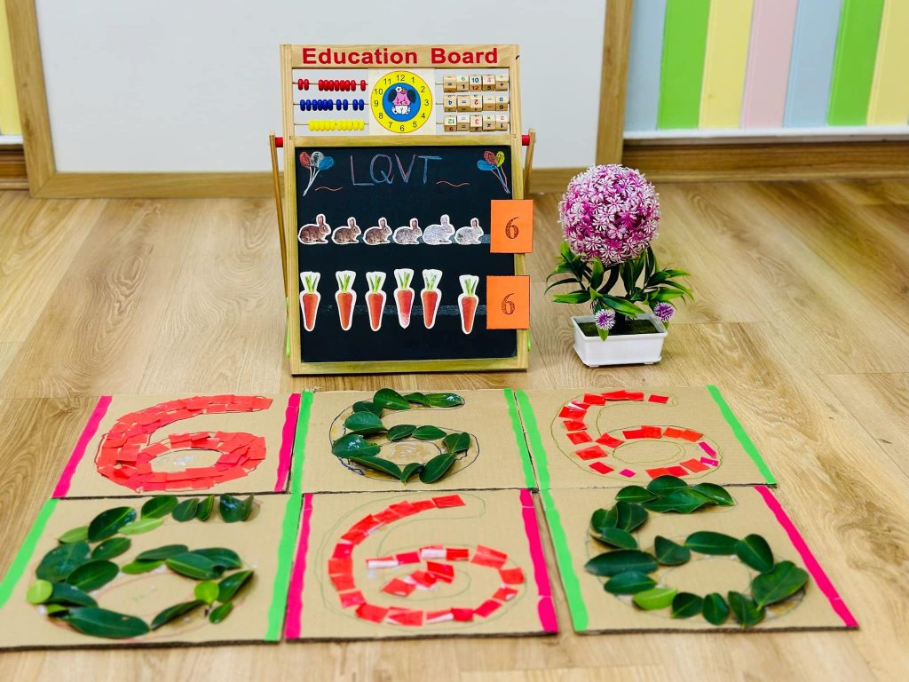 Sau khi đã làm quen với việc đếm, cô giáo đã mang đến một trò chơi thú vị. Cô chia các bạn thành nhóm nhỏ và đưa cho mỗi nhóm một số đồ vật. “Các con hãy đếm xem nhóm mình có bao nhiêu đồ vật nhé!”, cô khuyến khích. Các bạn nhỏ đã rất nhanh chóng nhận ra rằng nhóm của mình có đúng 6 chiếc bóng bay, 6 viên bi, hoặc 6 chiếc lá. Mỗi lần tìm thấy 6 đối tượng, những tiếng hò reo và tiếng cười vang lên thật vui vẻ!