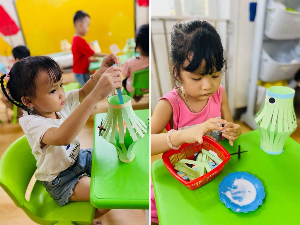 Hoạt động tự làm lồng đèn không chỉ mang lại niềm vui mà còn giúp các bạn nhỏ học hỏi thêm nhiều điều mới mẻ. Từ việc biết cách sử dụng các công cụ thủ công, nhận biết hình khối, màu sắc đến việc hợp tác với nhau để hoàn thành tác phẩm chung. Trung Thu này chắc chắn sẽ thêm phần đặc biệt khi các bạn nhỏ có thể tự tay rước những chiếc lồng đèn mà mình đã tạo ra, mang theo niềm tự hào và niềm vui sáng tạo.