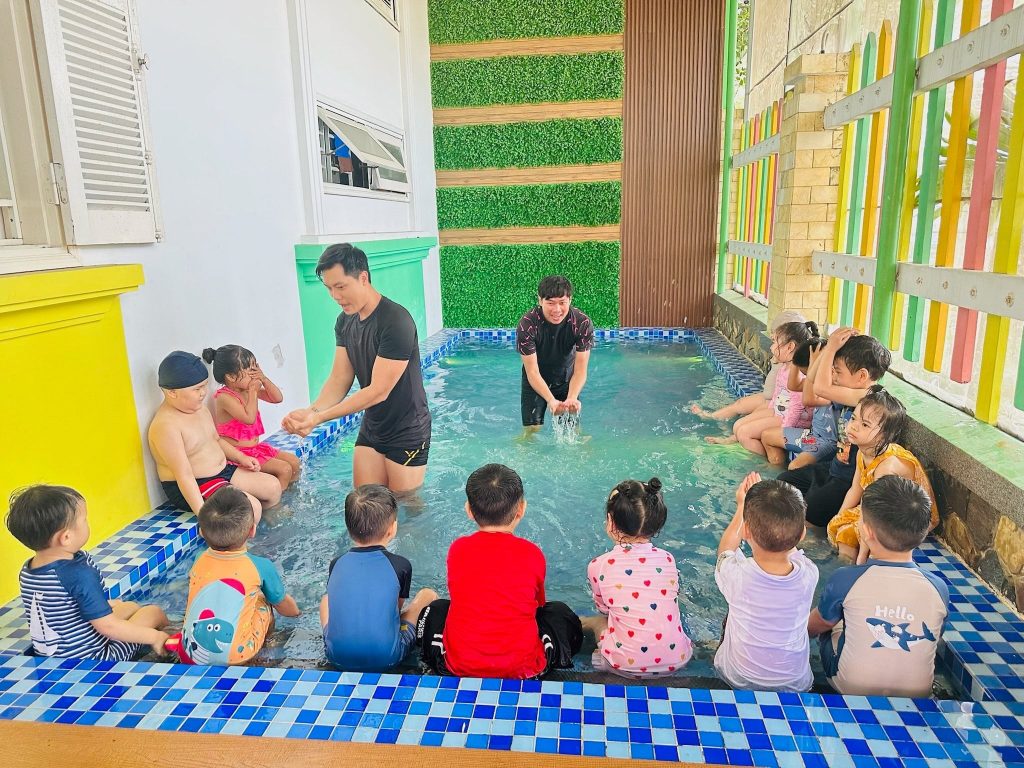 Để việc học trở nên hấp dẫn, kết hợp các trò chơi dưới nước như ném bóng, kéo phao, bơi theo nhóm hay thi bơi nhẹ giúp trẻ vừa luyện tập kỹ thuật, vừa vui chơi. Giáo viên hướng dẫn từng bước, tạo môi trường an toàn và khích lệ tích cực, giúp trẻ hình thành hứng thú với bơi lội, tự tin và chủ động hơn khi tiếp xúc với nước.