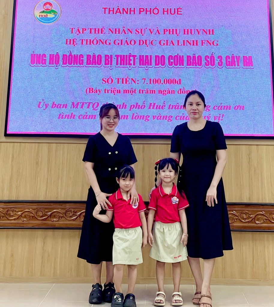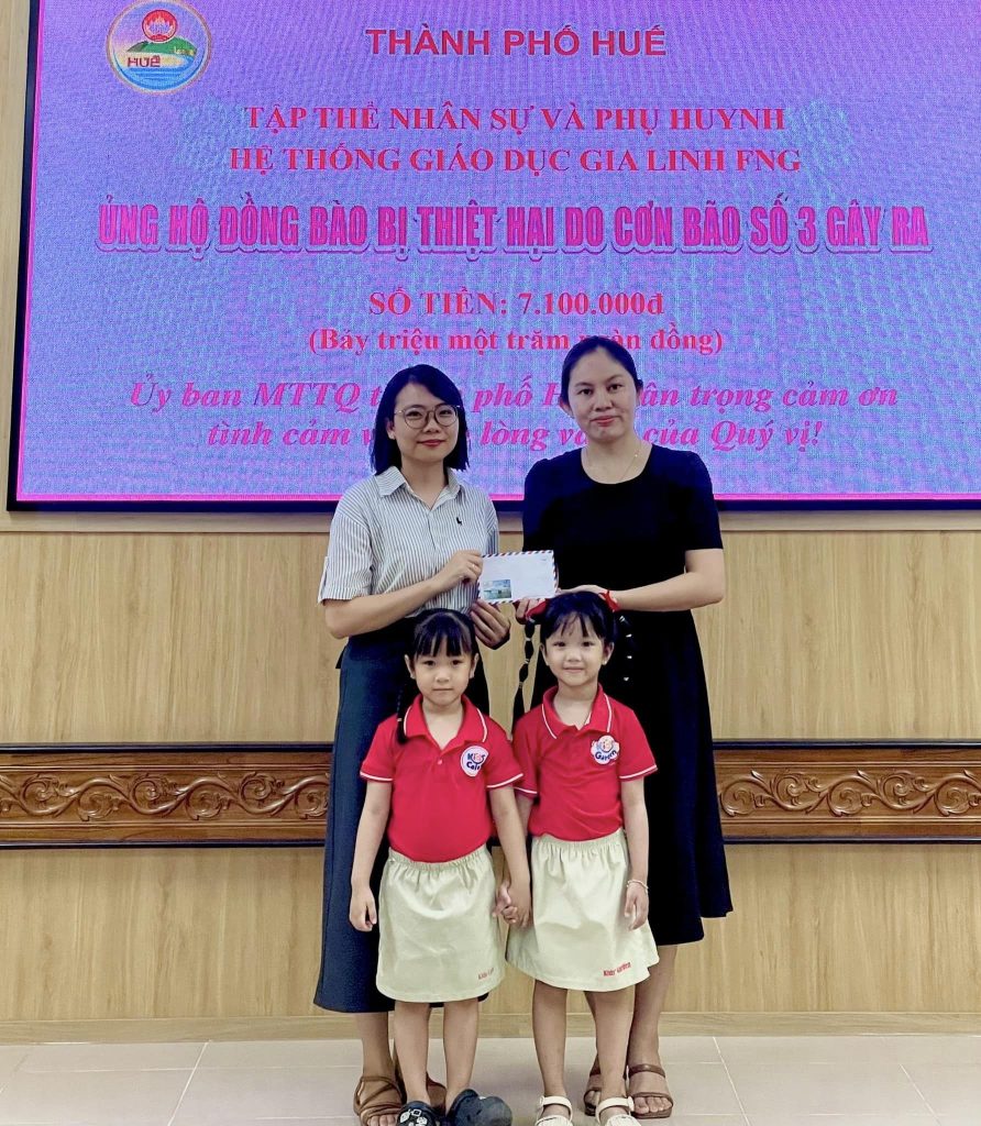 Sau hai ngày (16 – 17/9/2024) phát động dự án thiện nguyện “Trung thu sẻ chia”, quỹ thiện nguyện của Hệ thống Giáo dục Gia Linh FNG đã vinh dự nhận được sự ủng hộ từ Quý Phụ huynh, các Thầy Cô và các em học sinh với tổng số tiền là 7.100.000 đồng (Bảy triệu một trăm nghìn đồng). Chúng tôi rất vui mừng thông báo rằng số tiền này đã được nhà trường chuyển trực tiếp đến Ủy ban Mặt trận Tổ quốc Thành phố Huế, với mong muốn hỗ trợ đồng bào miền Bắc vượt qua những khó khăn trong cuộc sống.
