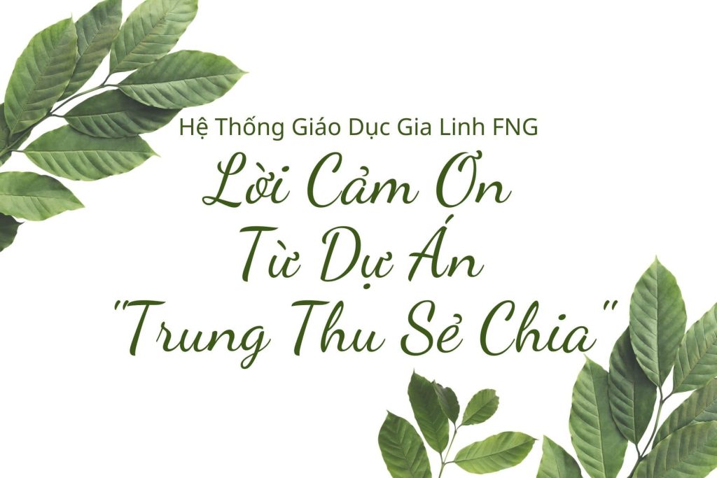 Một lần nữa, xin gửi lời cảm ơn chân thành đến tất cả mọi người đã chung tay làm nên thành công của dự án “Trung thu sẻ chia”. Chúng tôi tin rằng Yêu thương chân thành – Ươm mầm hạnh phúc chính là giá trị mà Hệ thống Giáo dục Gia Linh FNG luôn theo đuổi và lan tỏa.❤️