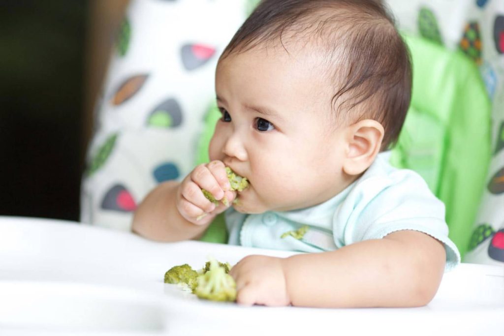 Khi bé đã ngồi vững và biết cầm đồ vật bằng tay, mẹ có thể bắt đầu cho bé tập ăn bốc – một bước quan trọng để bé học cách tự ăn, khám phá thức ăn và phát triển sự tự lập.