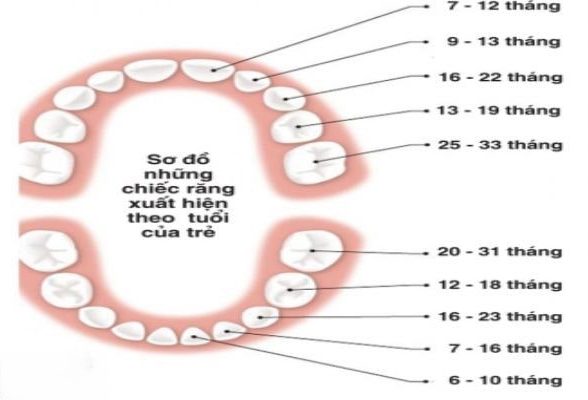 Dưới đây là các mốc thời gian tham khảo để bố mẹ có thể theo dõi sự phát triển của răng bé: