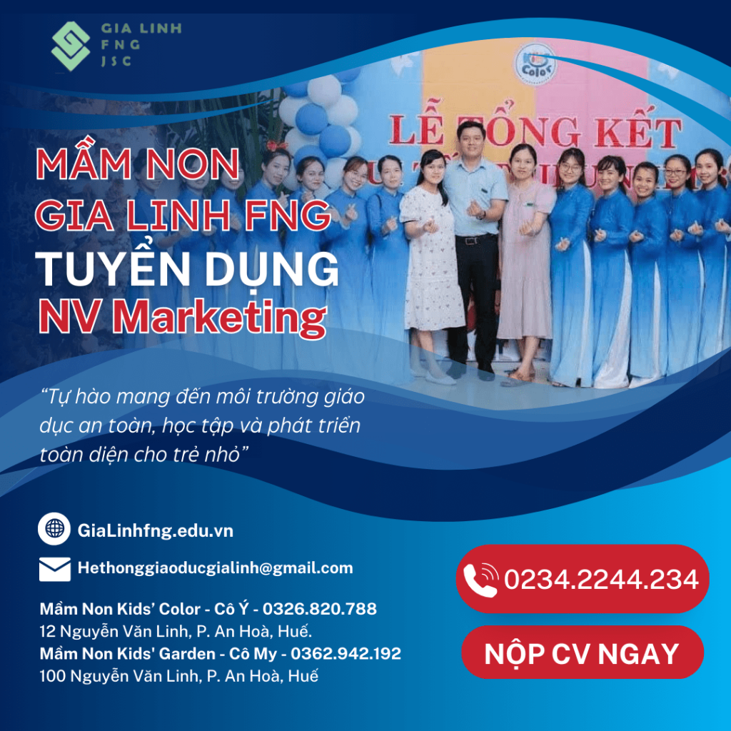 Bạn là người sáng tạo, yêu thích trẻ em và có niềm đam mê với ngành giáo dục? Đây là cơ hội tuyệt vời dành cho bạn! Hãy gia nhập đội ngũ của chúng tôi tại vị trí Chuyên viên Marketing để cùng chắp cánh cho những mầm non tương lai!